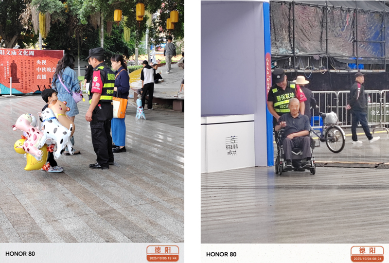 溫情服務(wù),柔性守護(hù):安保工作并非只有鐵面無(wú)私,更充滿了人文關(guān)懷。文廟廣場(chǎng)活動(dòng)現(xiàn)場(chǎng),一名與家人走散的小男孩在安保人員的悉心照料下,通過(guò)廣播系統(tǒng)很快找到了父母;也有老人忽感身體不適,執(zhí)勤隊(duì)員第一時(shí)間發(fā)現(xiàn)并聯(lián)系醫(yī)療點(diǎn),提供了及時(shí)的幫助。這些溫暖的瞬間,讓嚴(yán)肅的安保工作充滿了溫度,贏得了德陽(yáng)市民的廣泛贊譽(yù)。